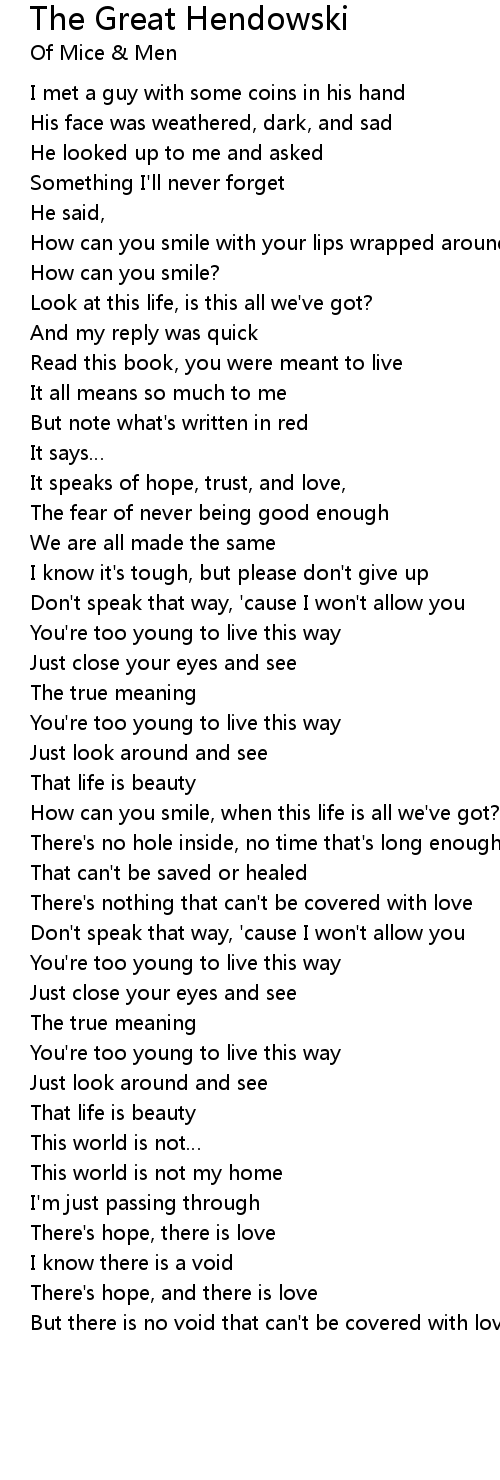 | [01:06.04] | You're too young to live this way |
