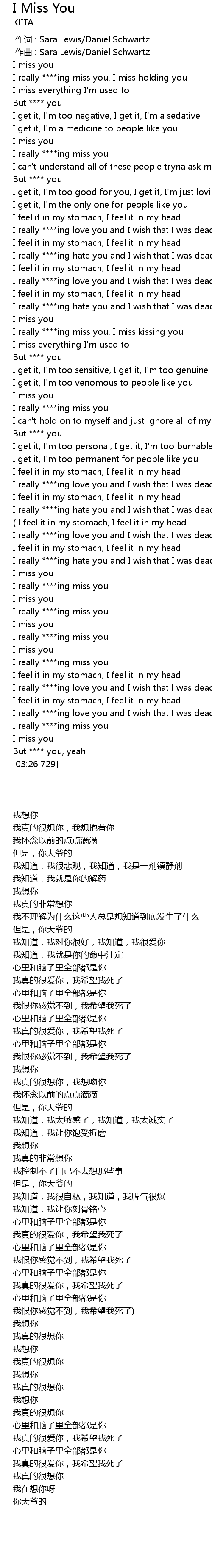 | [01:29.315] | I really ****ing miss you, I miss kissing you |