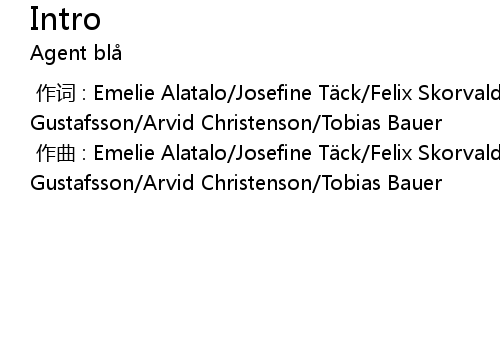 | [00:00.000] | zuò qǔ : Emelie Alatalo Josefine T ck Felix Skorvald Lucas Gustafsson Arvid Christenson Tobias Bauer |