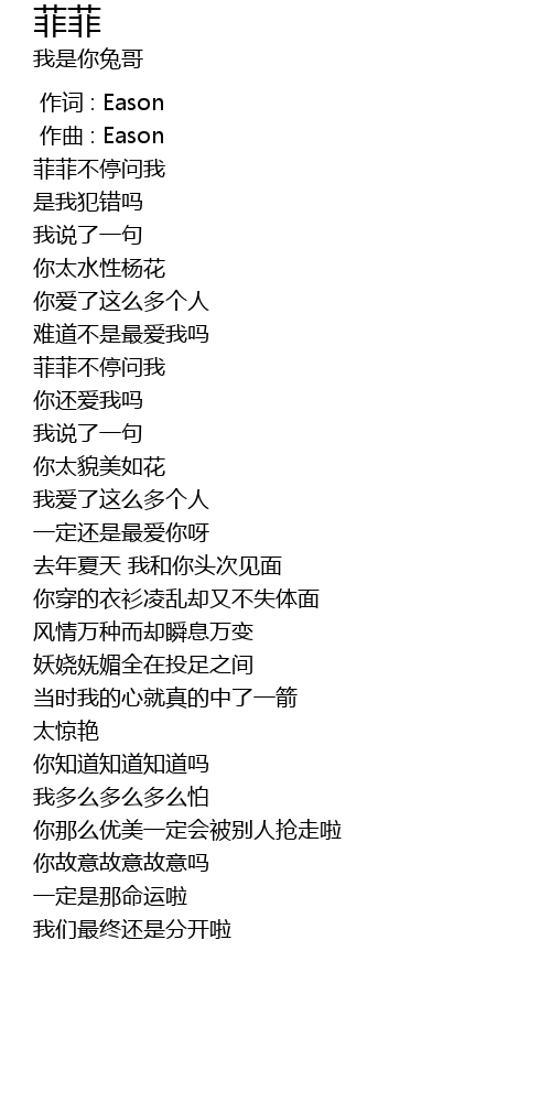 | [00:32.536] | 菲菲不停问我 |