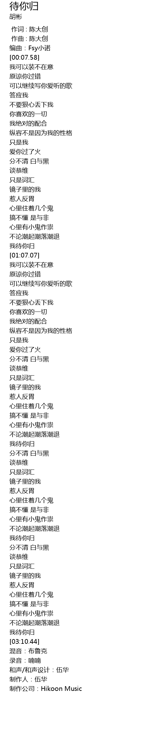 | [03:00.44] | 我待你归 |