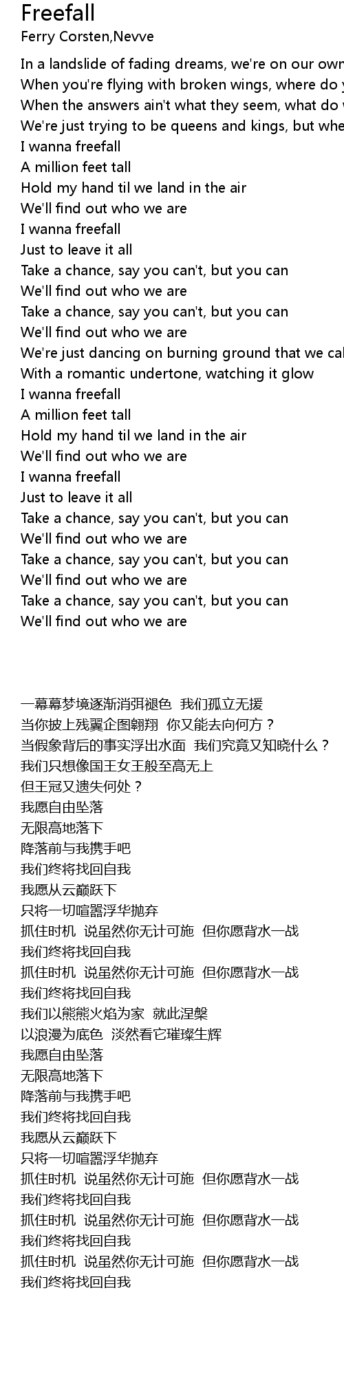 | [02:00.411] | I wanna freefall |