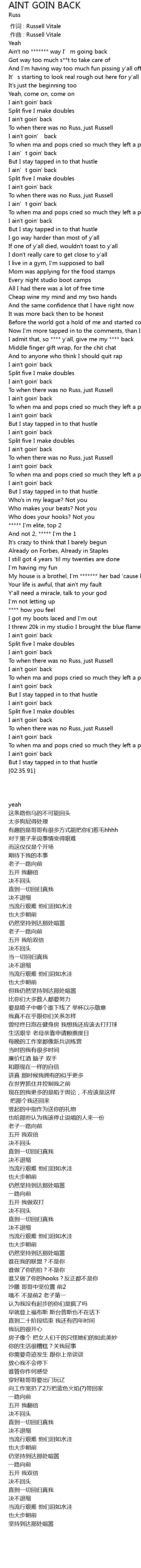 | [00:05.41] | Ain't no ******* way I’m going back |