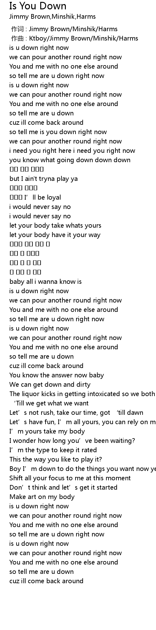 | [00:00.000] | 作词 : Jimmy Brown/Minshik/Harms |