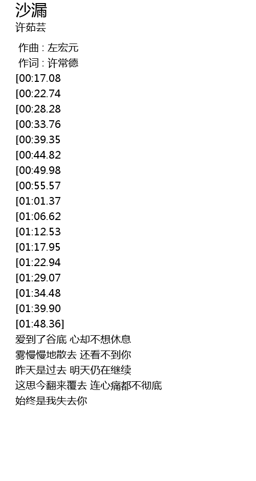 | [02:19.17][00:22.74] | 泪流出了心底 我不能由己 |