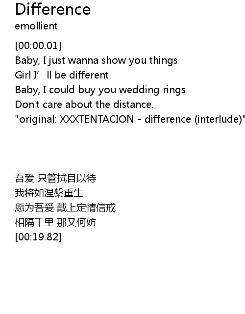 | [00:19.82] | "original: XXXTENTACION - difference (interlude)" |