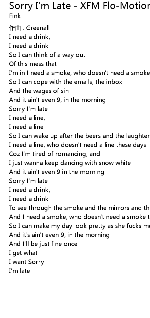 | Song | Sorry I'm Late - XFM Flo-Motion Session |