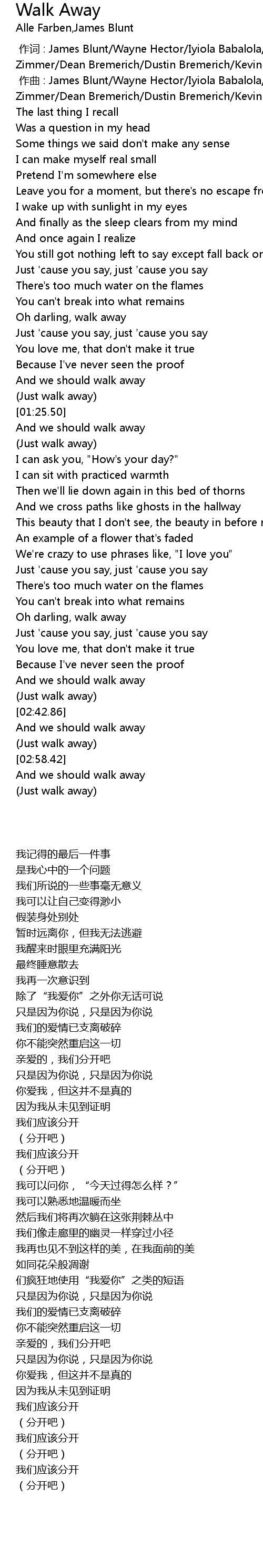 | [00:00.000] | 作词 : James Blunt/Wayne Hector/Iyiola Babalola/Darren Lewis/Frans Zimmer/Dean Bremerich/Dustin Bremerich/Kevin Zuber/Maciej Puchalski |