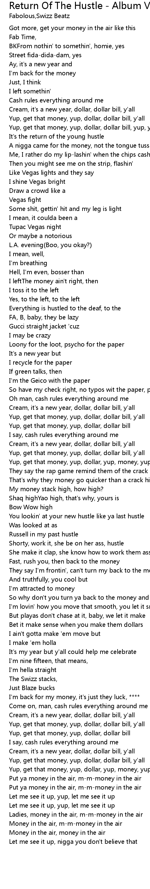 Yup, get that money, yup, dollar, dollar bill, yup, yup, yup |