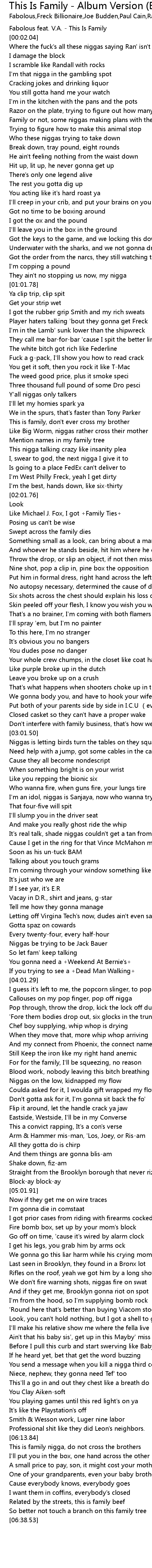 | [00:01.04] | Fabolous feat. V.A. - This Is Family |