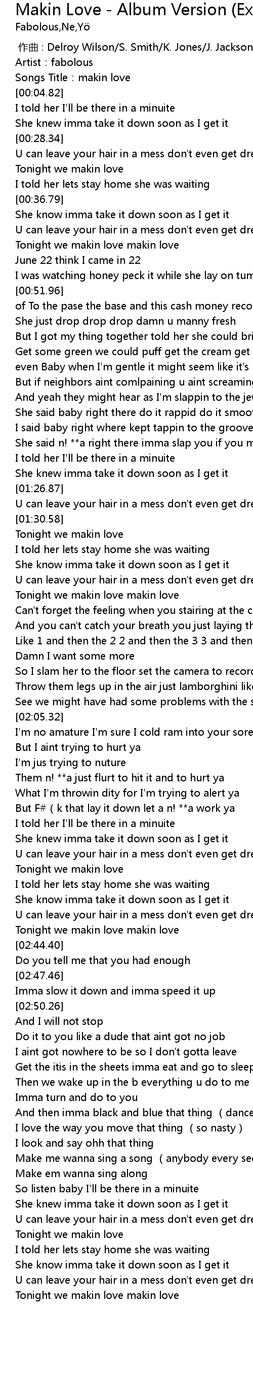 | [01:18.83] | She said n! **a right there imma slap you if you move |