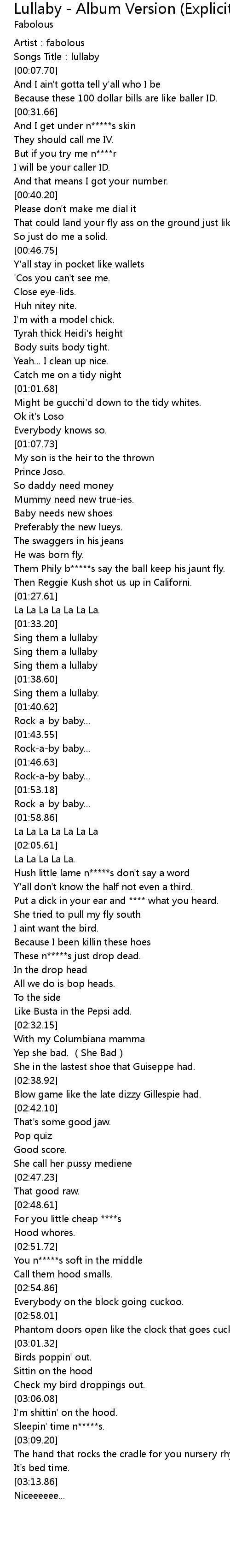 | [02:10.54] | Hush little lame n*****s don't say a word |
