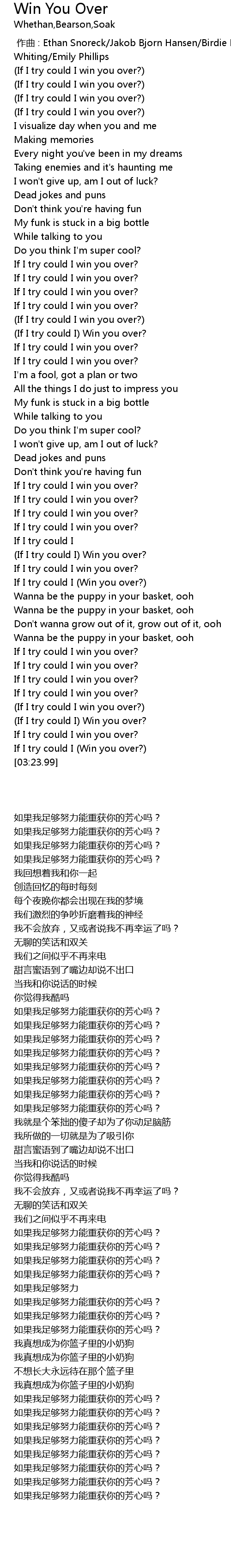 | [01:37.55] | I won' t give up, am I out of luck? |