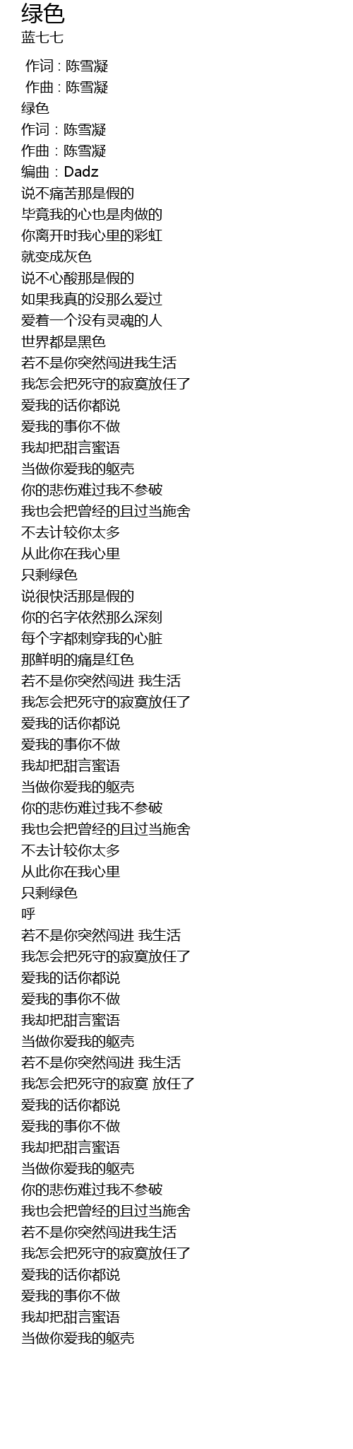| [02:15.427] | zhǐ shèng lǜ sè |