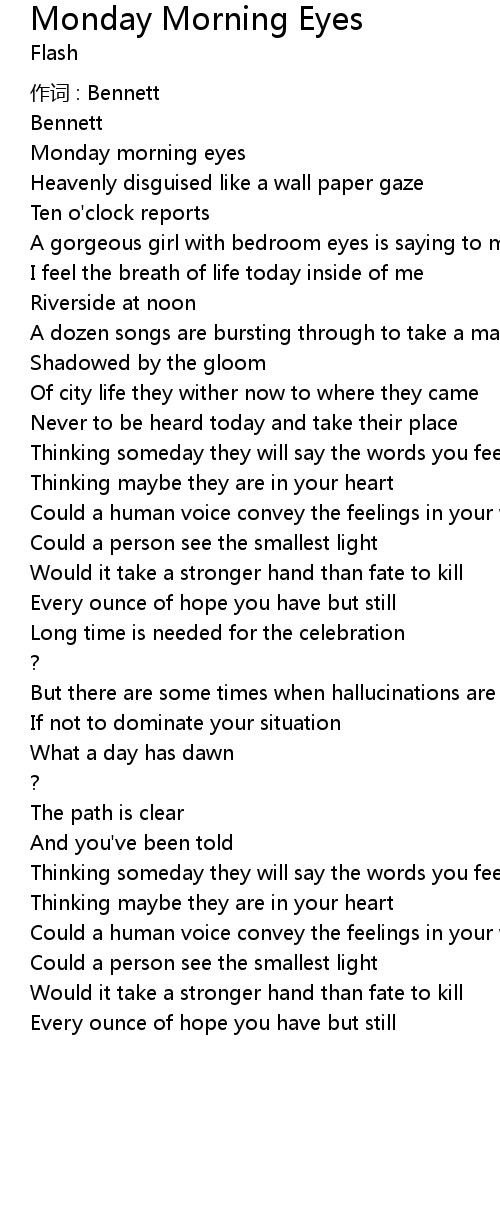 | Song | Monday Morning Eyes |