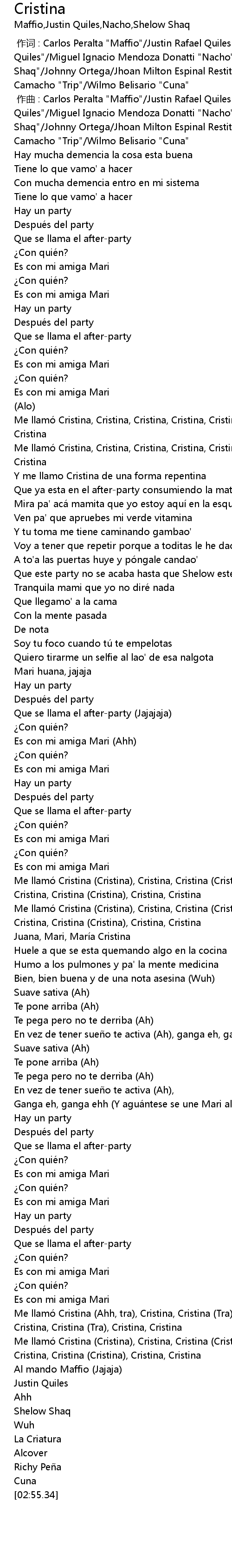 | [02:34.57] | Cristina, Cristina Cristina, Cristina, Cristina |