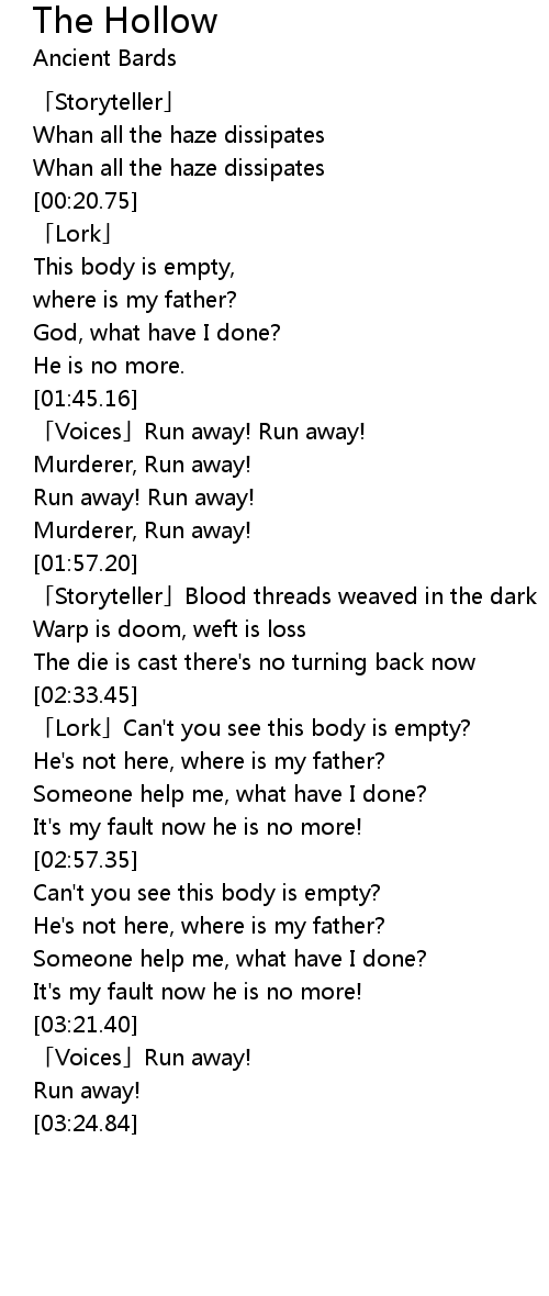 | [01:57.58] | Storyteller Blood threads weaved in the dark |