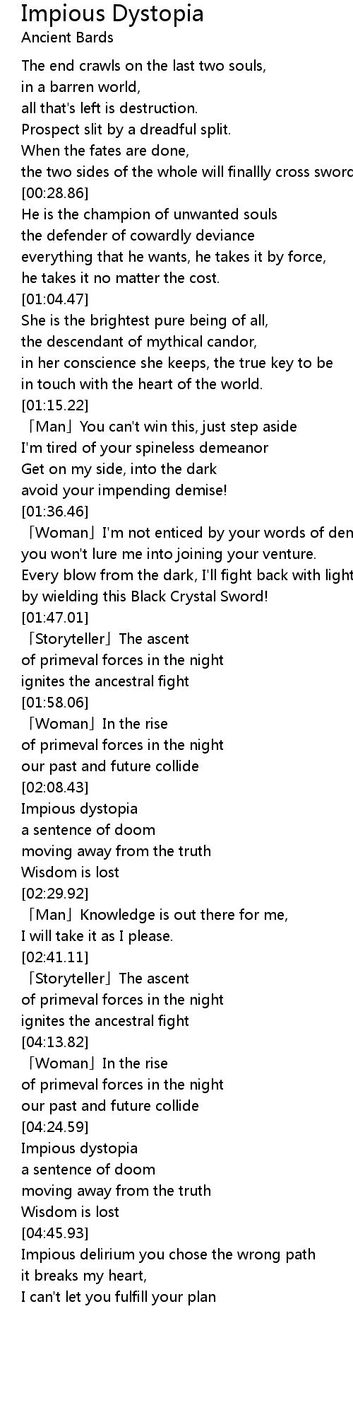 | [04:46.06] | Impious delirium you chose the wrong path |