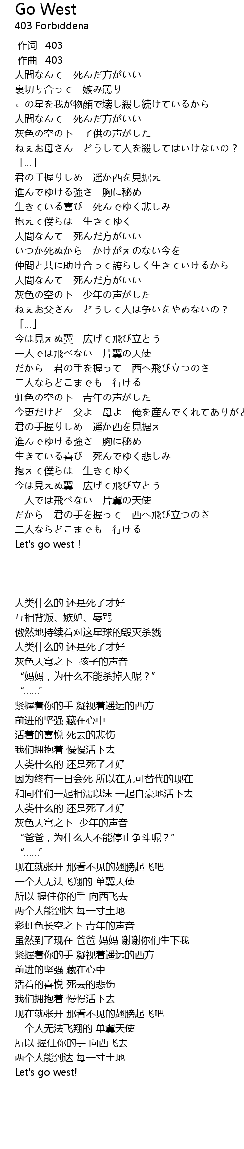| [00:35.885] | 君の手握りしめ 遥か西を見据え |