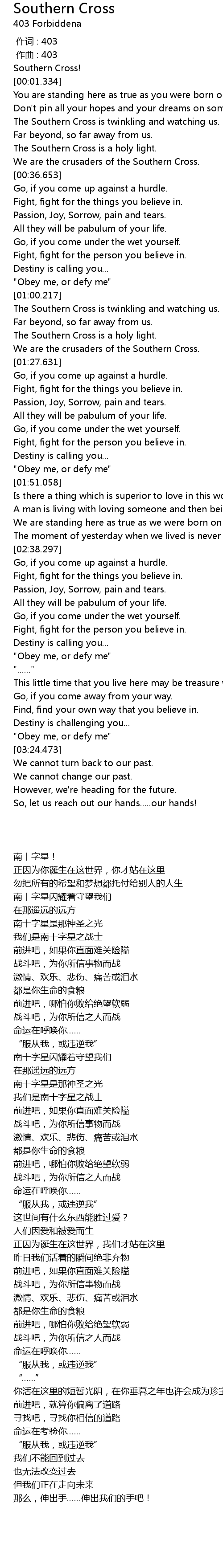 | [00:25.398] | The Southern Cross is twinkling and watching us. |