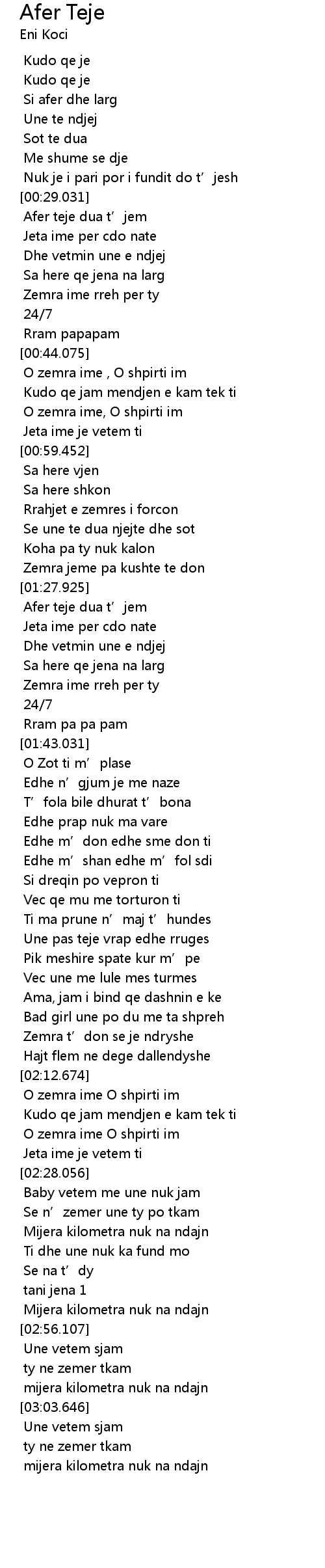 | [02:00.007] | Une pas teje vrap edhe rruges |