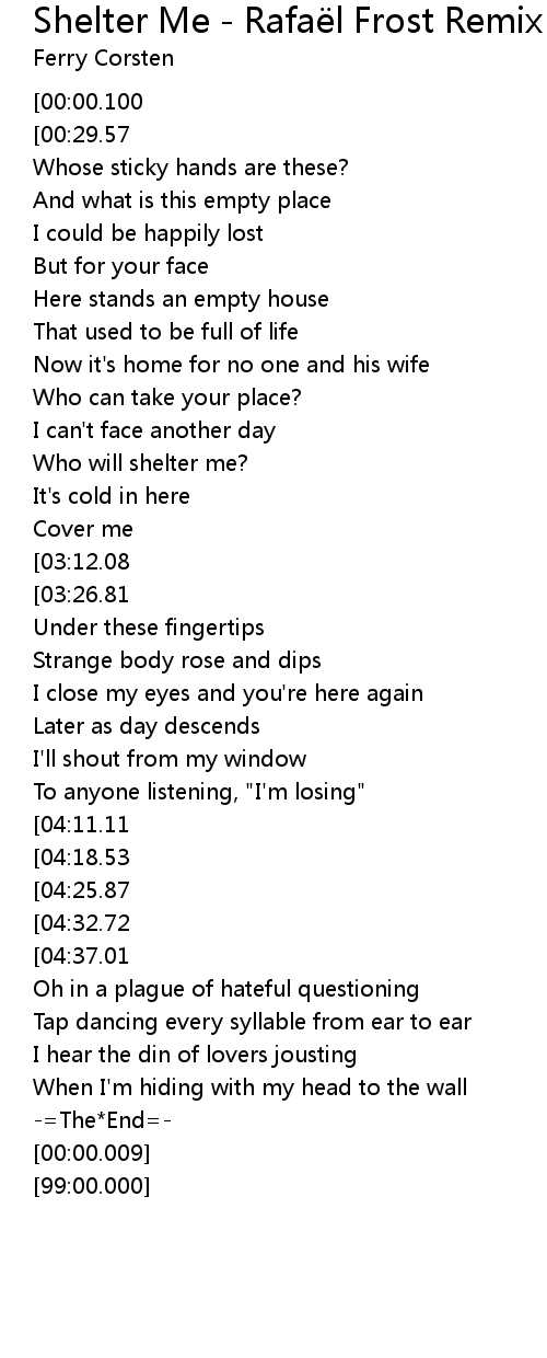 | [04:55.16][04:25.87][02:56.88] | Who will shelter me? |