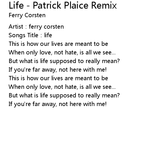 | Song | Life - Patrick Plaice Remix |