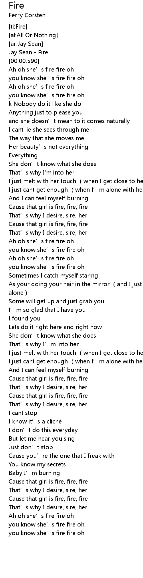 | [00:00.100] | Jay Sean - Fire |