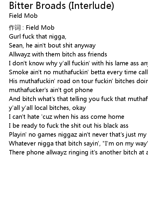 | And bitch what's that telling you fuck that muthafuckerthey out on the time for y'all y'all local bitches, okay | |