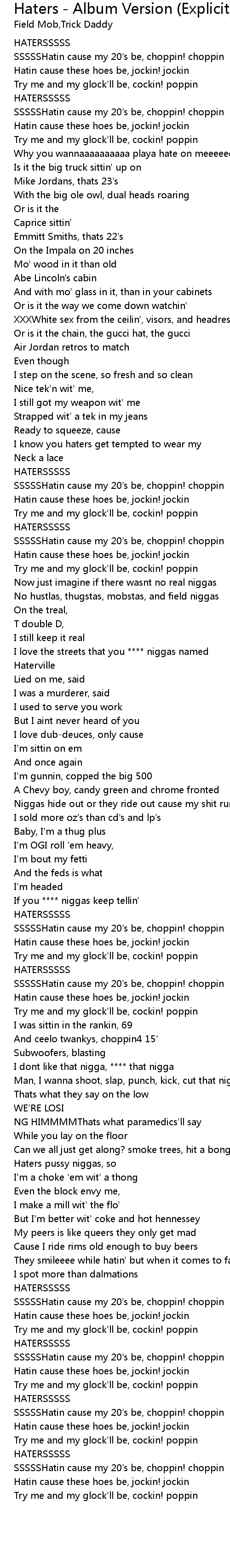 Hatin cause these hoes be, jockin! jockin |
