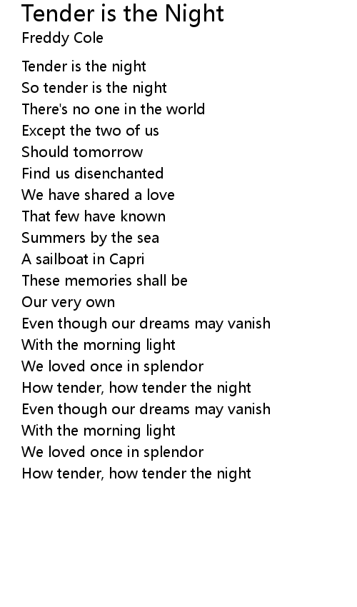 | So tender is the night | |