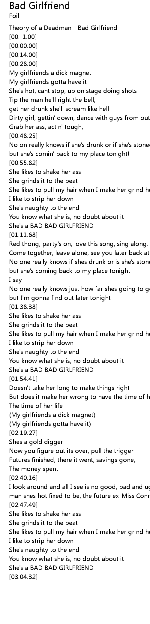 She's a BAD BAD GIRLFRIEND |