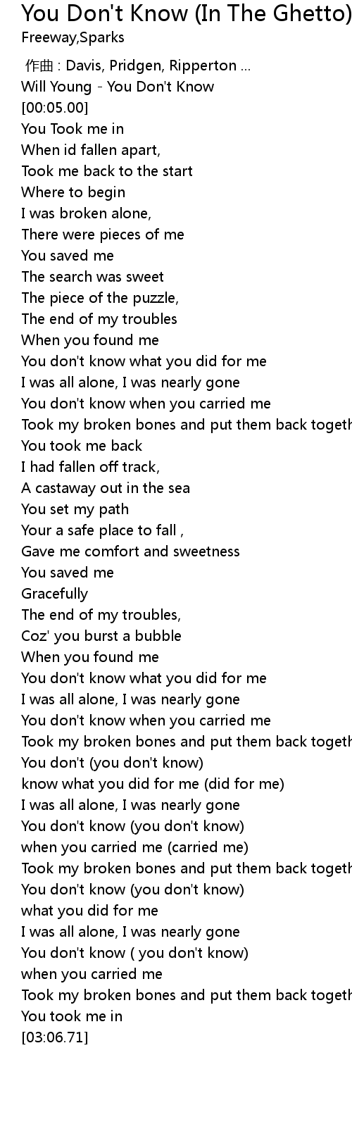 | [02:18.29] | You don' t you don' t know |