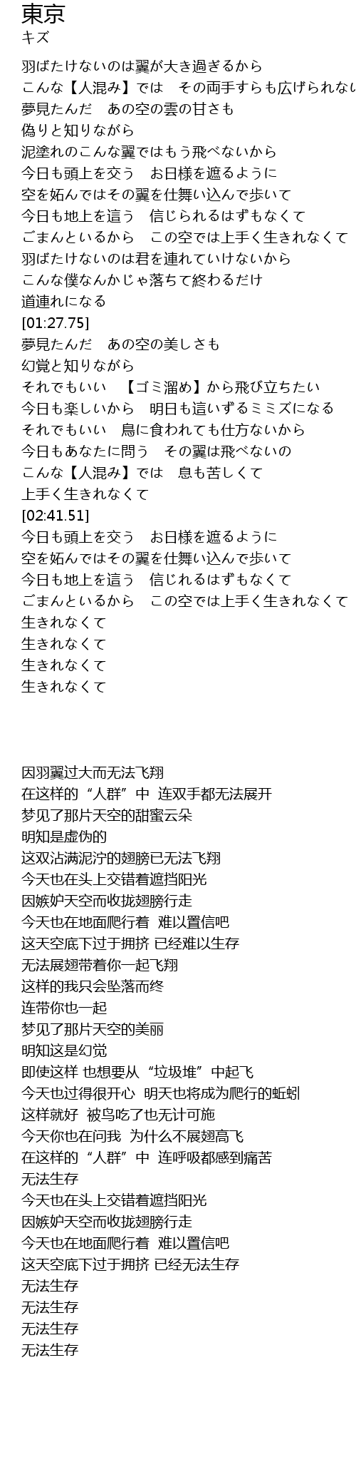 | [01:53.57] | それでもいい 【ゴミ溜め】から飛び立ちたい |