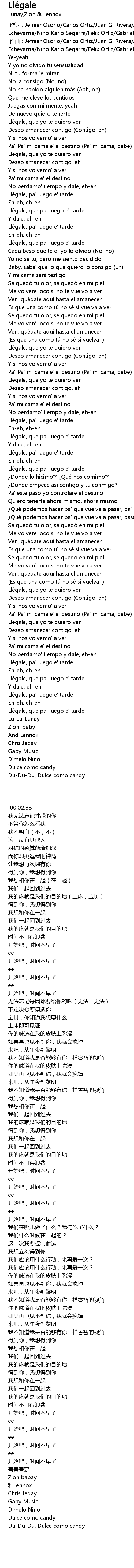 | [02:11.00] | Lle gale, que pa' luego e' tarde |