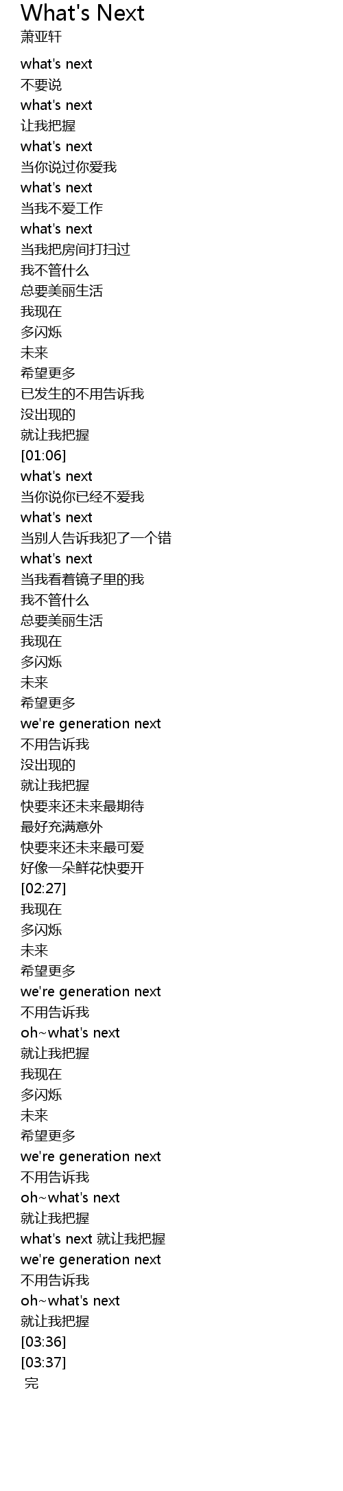 | [03:23] | what's next 就让我把握 |