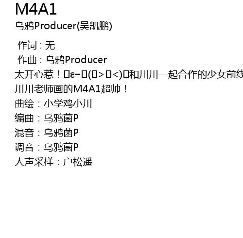 | [00:08.423] | 太开心惹!ε≡٩(๑>₃<)۶和川川一起合作的少女前线M4A1同人曲 |