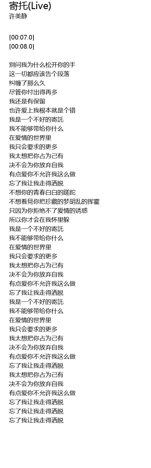 | [02:01.0] | wǒ shì yí gè bù hǎo de jì tuō |
