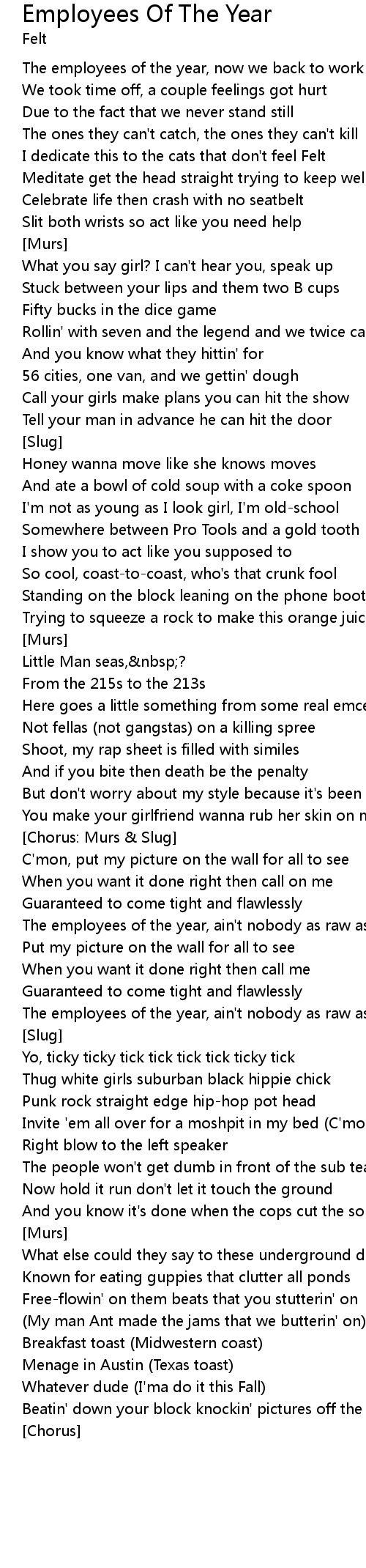 The employees of the year, ain't nobody as raw as we |