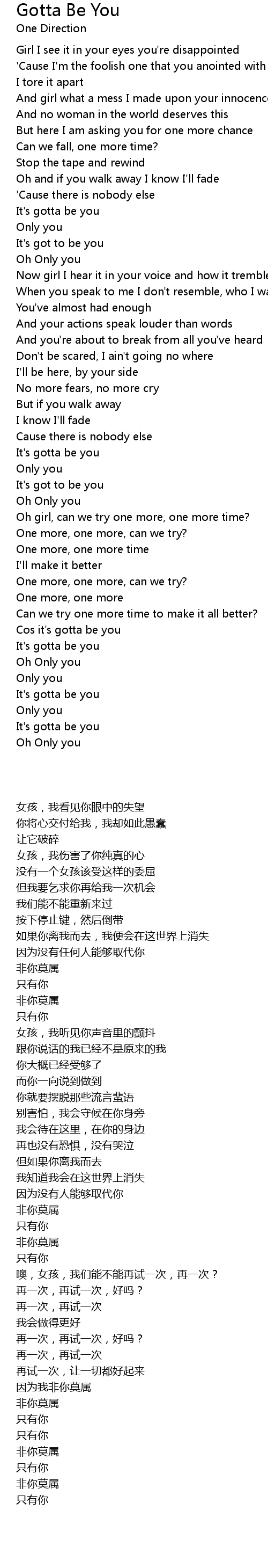 Cos it's gotta be you |