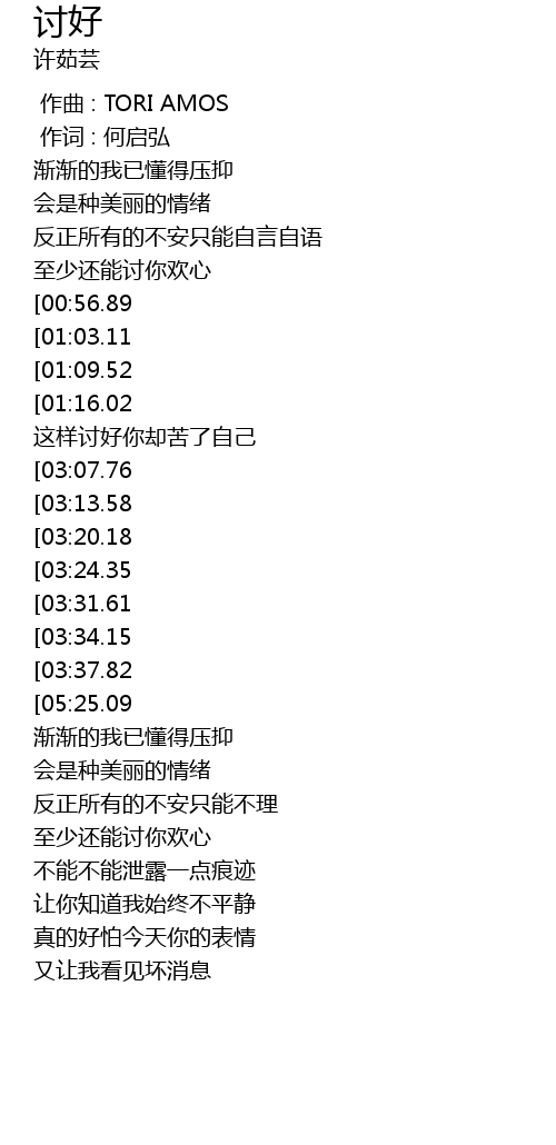 | [05:01.15][03:20.18][01:35.97] | 讨好你却害了自己 |