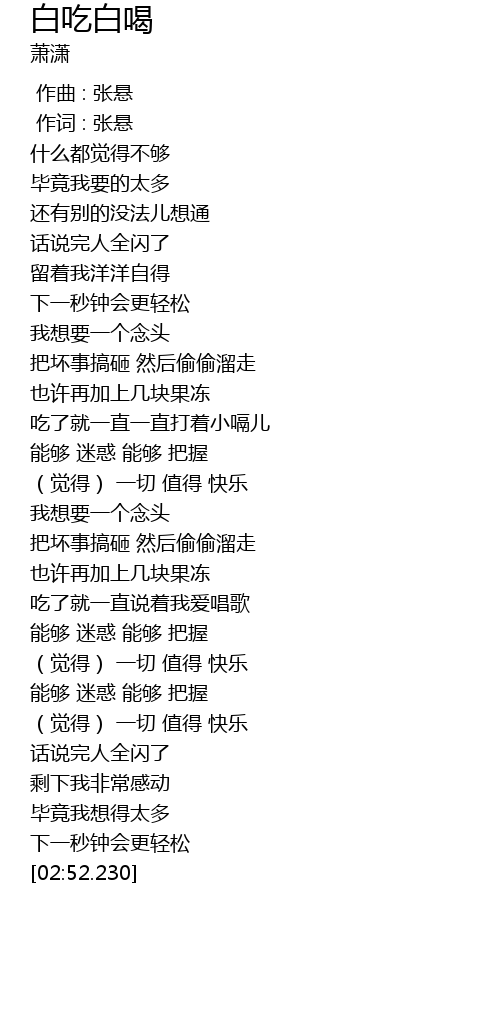| Song | 白吃白喝 |
