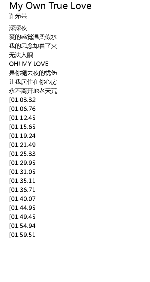 | [03:29.78][01:59.51] | MY OWN TRUE LOVE |