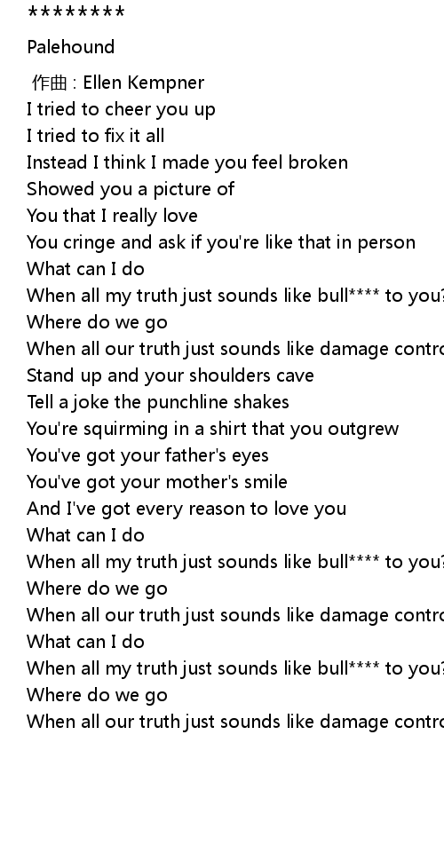 | [02:41.56] | When all our truth just sounds like damage control? |