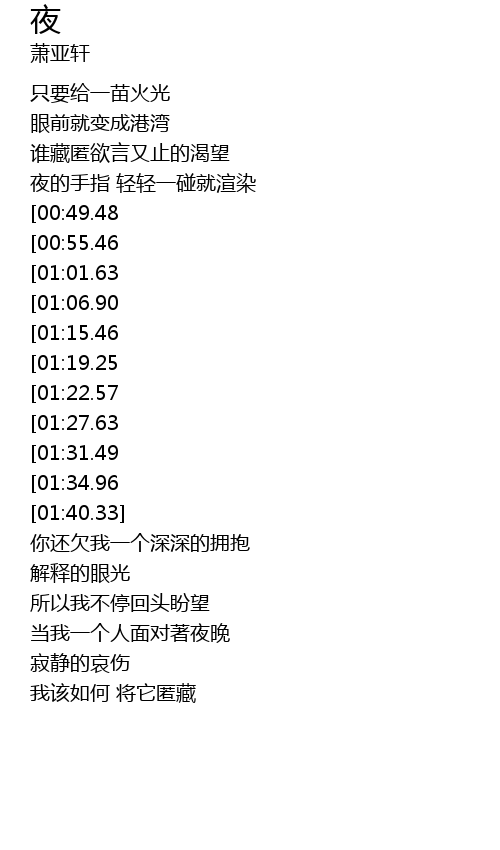 | [02:20.39][01:06.90] | 后来感叹 交会的夜太匆忙 |