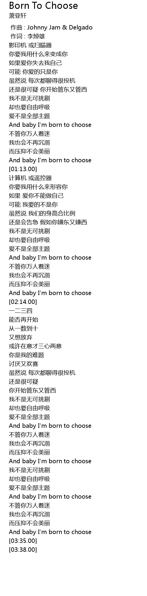 | [03:18.00] | And baby I' m born to choose |