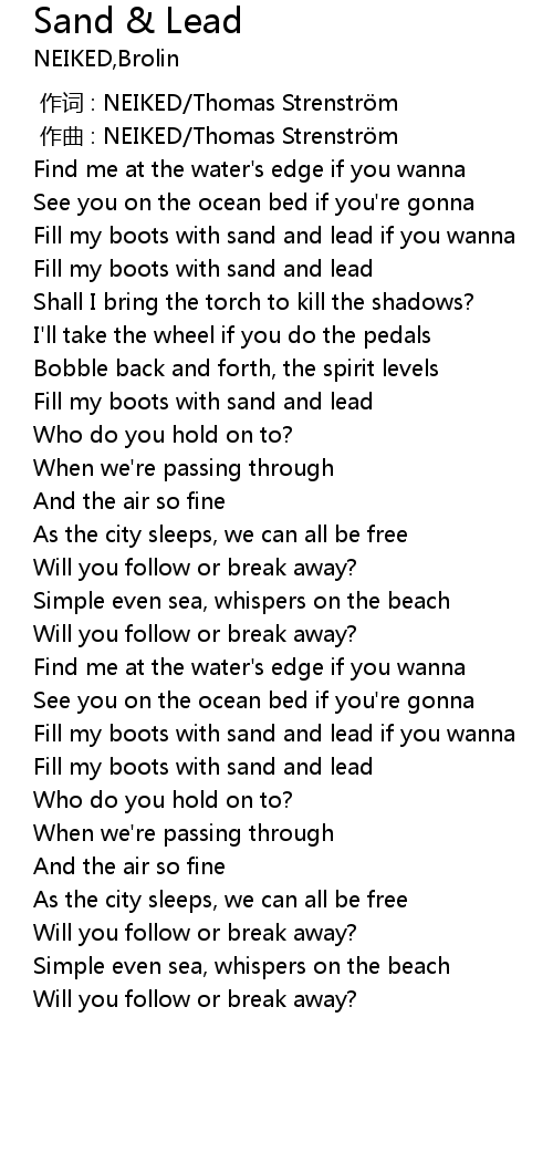 | [00:00.000] | zuo ci : NEIKED Thomas Strenstr m |