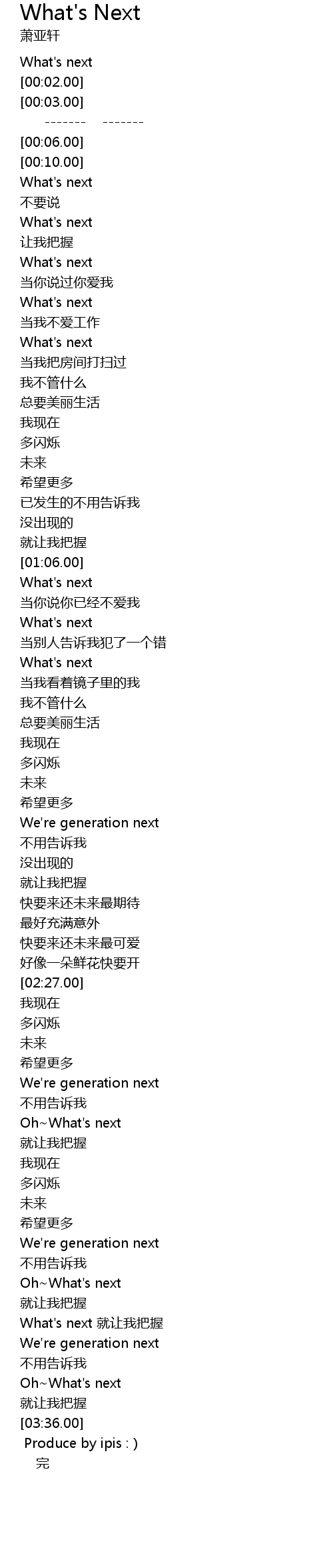 | [00:00.00] | What' s next |