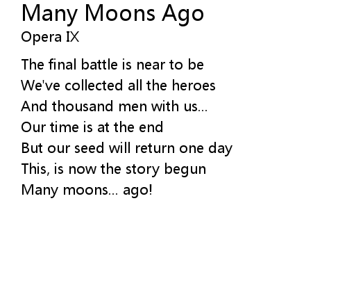 | Song | Many Moons Ago |
