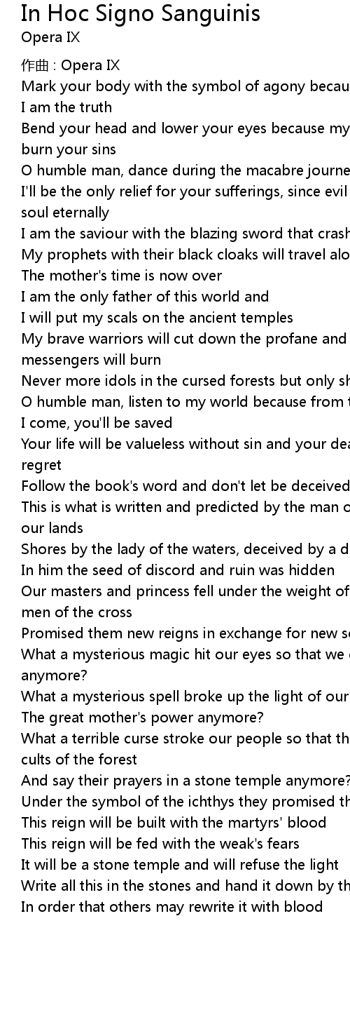 | Song | In Hoc Signo Sanguinis |